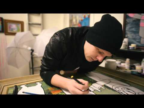 If you didn't already know, some of the most dope, original art and music is coming out of the Northwest as it has for years, people are just starting to pay more attention to the upper left coast lately. Somebody that more and more people are paying attention to is Peter Robinson, AKA P Smoov (of Fresh Espresso & MAD RAD) AKA Ten Hundred (painter, creator, maker, dreamer). He has been a major player in the NW music scene and has been making waves with his unique art style and approach. He paints over old canvases and covers them with vibrant, offbeat characters from another universe, such as the Watcher - a diamond shaped creature who sees all that unfolds in this alternate reality. Previously, we did a short film for Peter where we followed the creation of a piece from start to finish in 48 hours. He teamed up with us again to document the creation and preparation for one of his biggest shows yet, Ten Hundred- Reincarnated. We shot for three days over the course of a month to show some the intricacies of putting on a show of this caliber. The check video link below the photos; in the meantime, here are some behind-the-scenes shots leading up to the Ten Hundred art show.